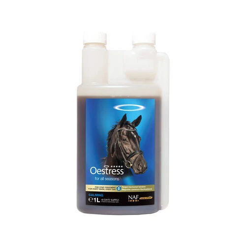 Wenn der Hormonspiegel von Ihrer Stute aus dem Gleichgewicht gerät, können Sie ihr NAF Oestress geben. Dieses Ergänzungsmittel enthält natürliche Zutaten, die den Hormonzyklus von Ihrem Pferd positiv beeinflussen. Das Oestress enthält zudem Magnesium. Dieses Mineral wirkt unterstützend gegen Angst und Muskelverspannungen.